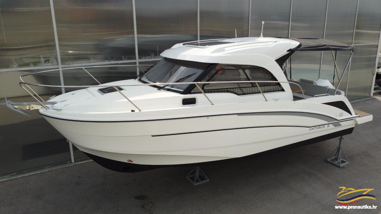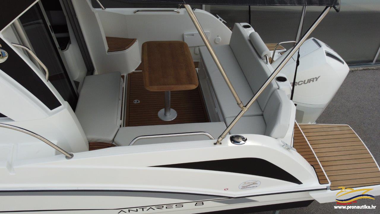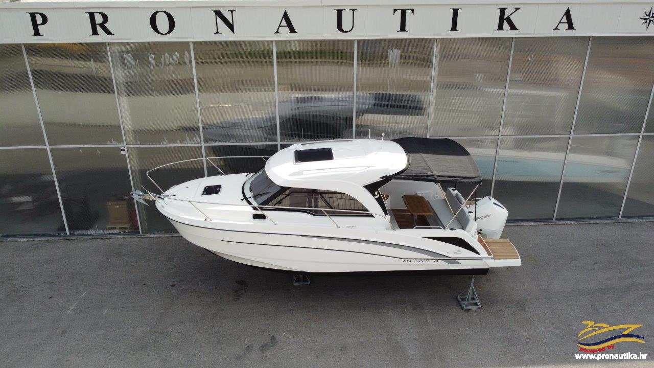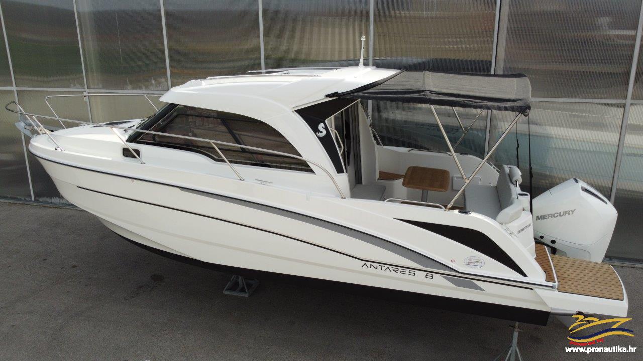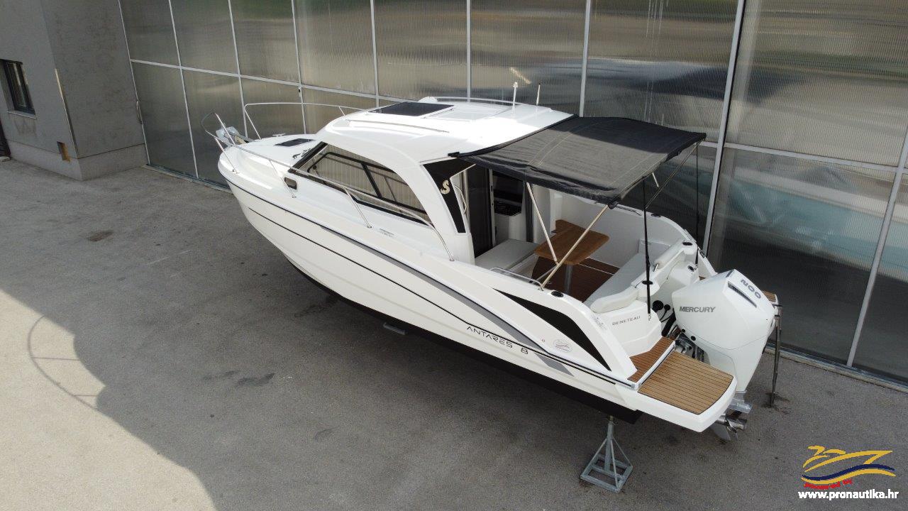 Perfect Antares 8 OB with ideal Mercury V6-200 engine in white, equipped with all options;