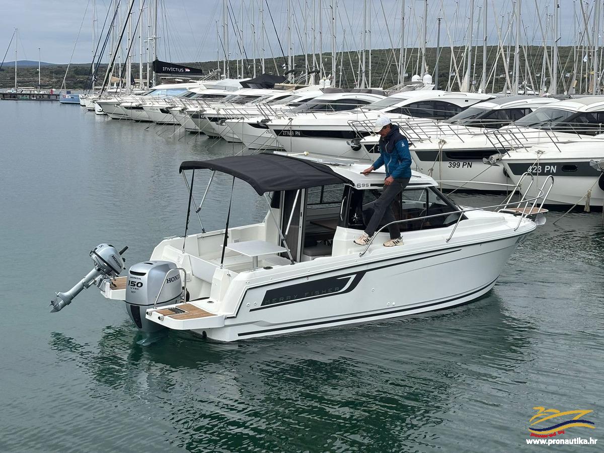 The vessel is equipped up to the engine, all cushions in the cockpit, bimini awning inox XXL with storage cover, bilge pump, navigation and anchor lights, signal horn, panel with switches, fuel tank 70 liters, mechanical steering system with cable, integrated stern platforms, ladder, bow sundeck (the insert can be used as a table in the bow), mooring cleats, anchor carrier, anchor storage, side compartments in the cockpit, large aft storage with lifting system on hydraulic shock absorbers and locking fittings, storage under the skipper's seat with the possibility of locking, inspection opening on the console, stainless steel fence, battery switch, battery box.