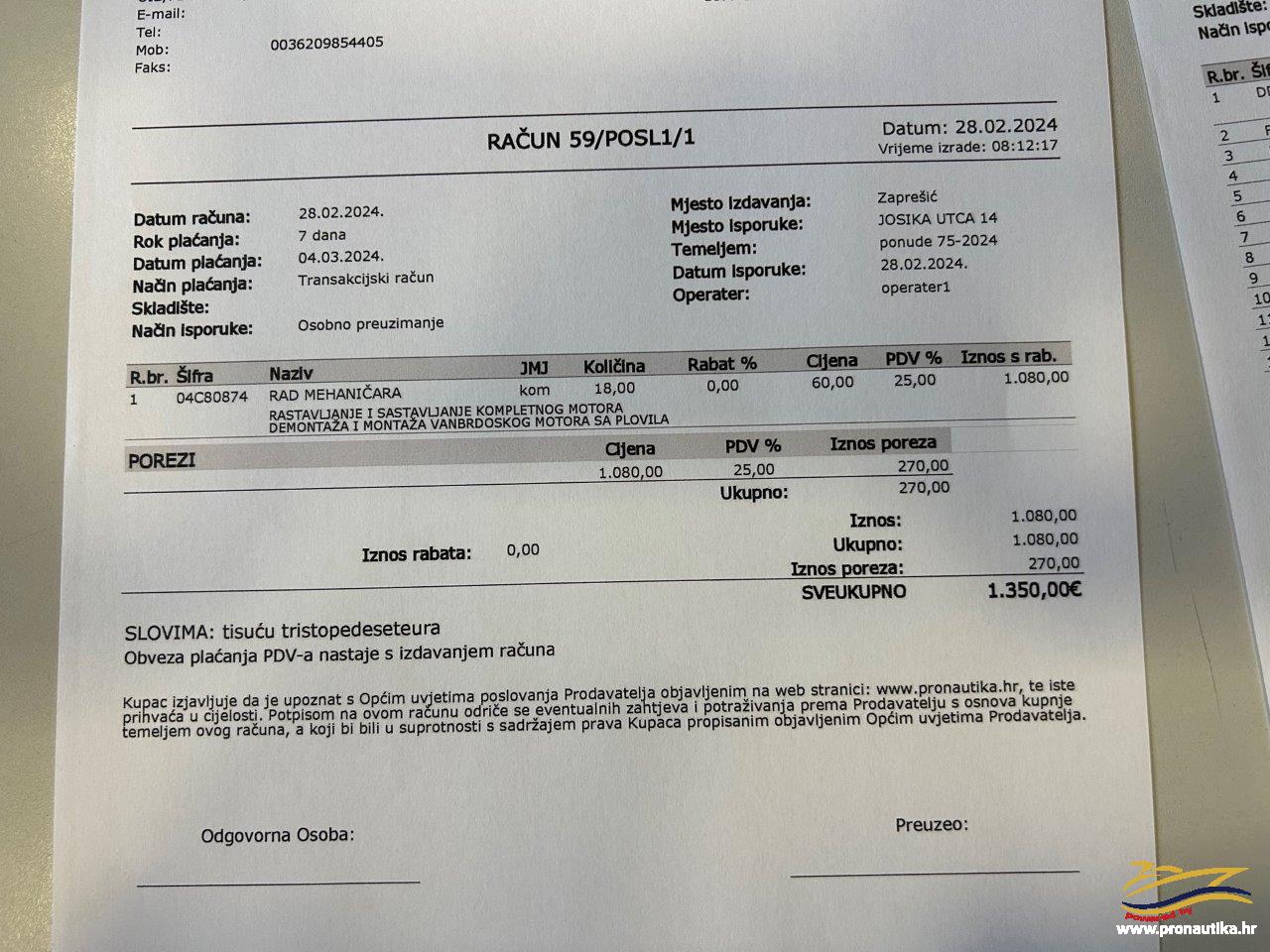 M: +385 91 600 3124 PRODAJA REZERVNIH DIJELOVA I DODATNE OPREME