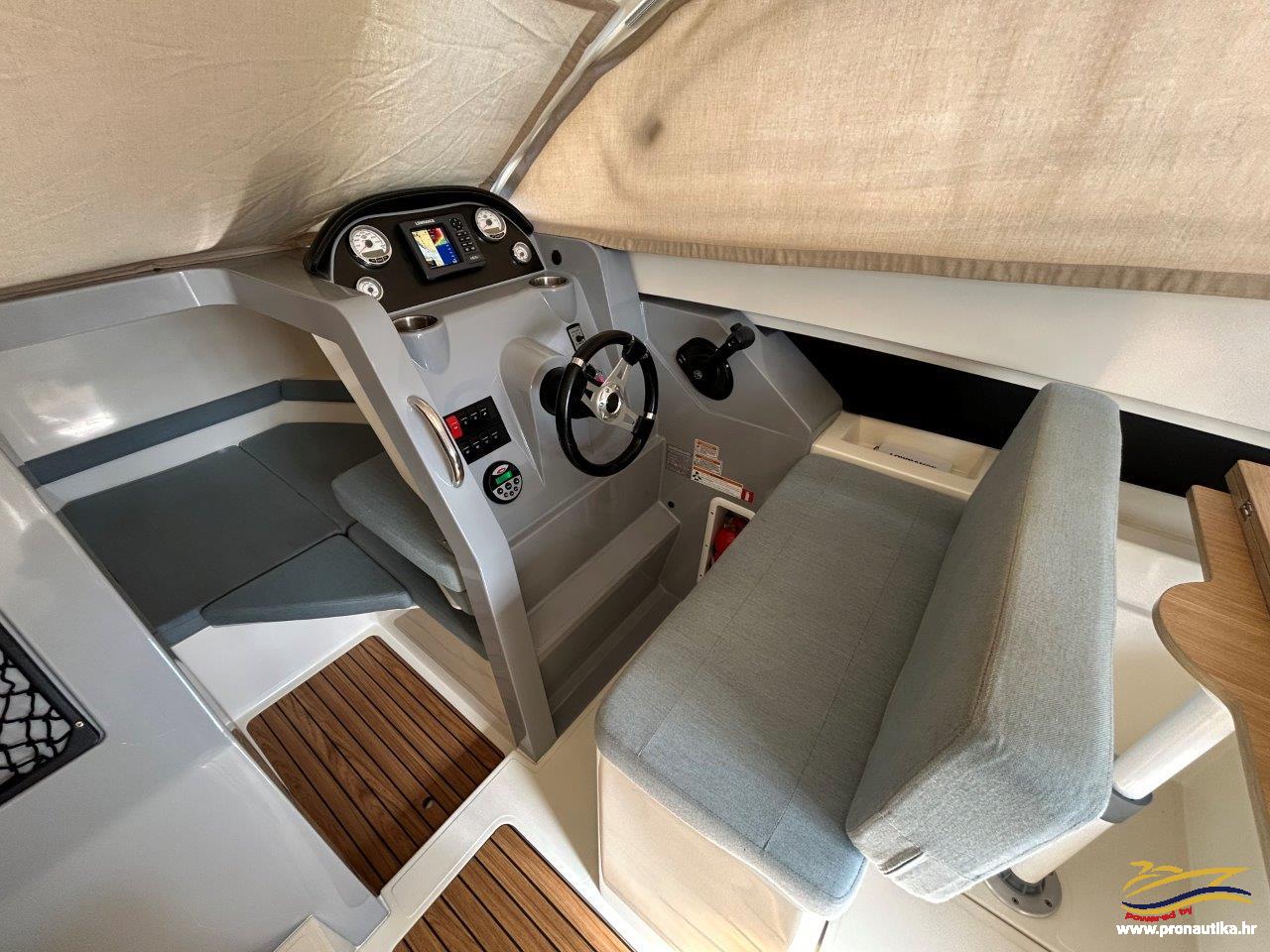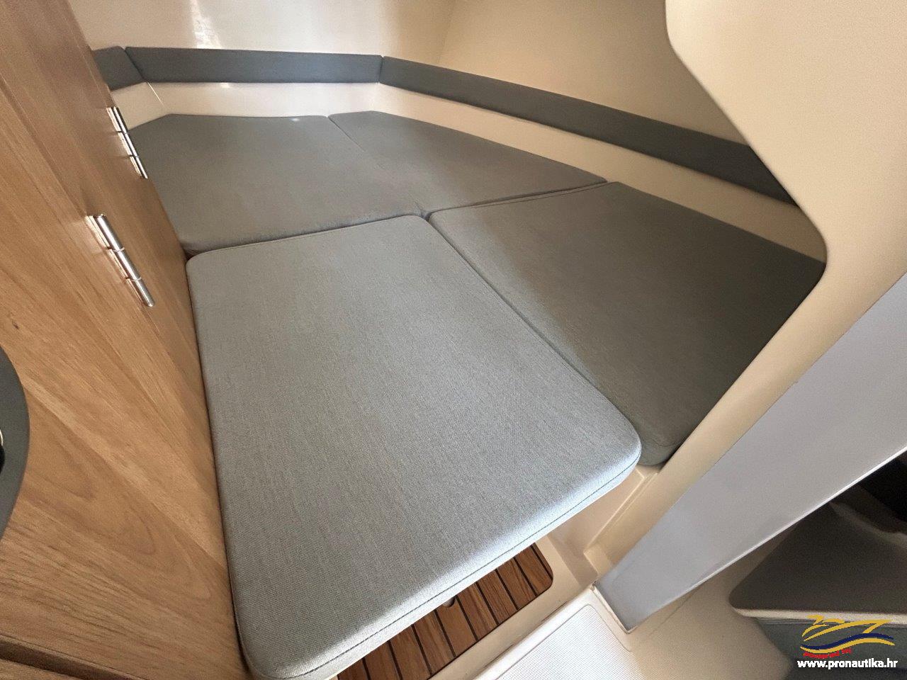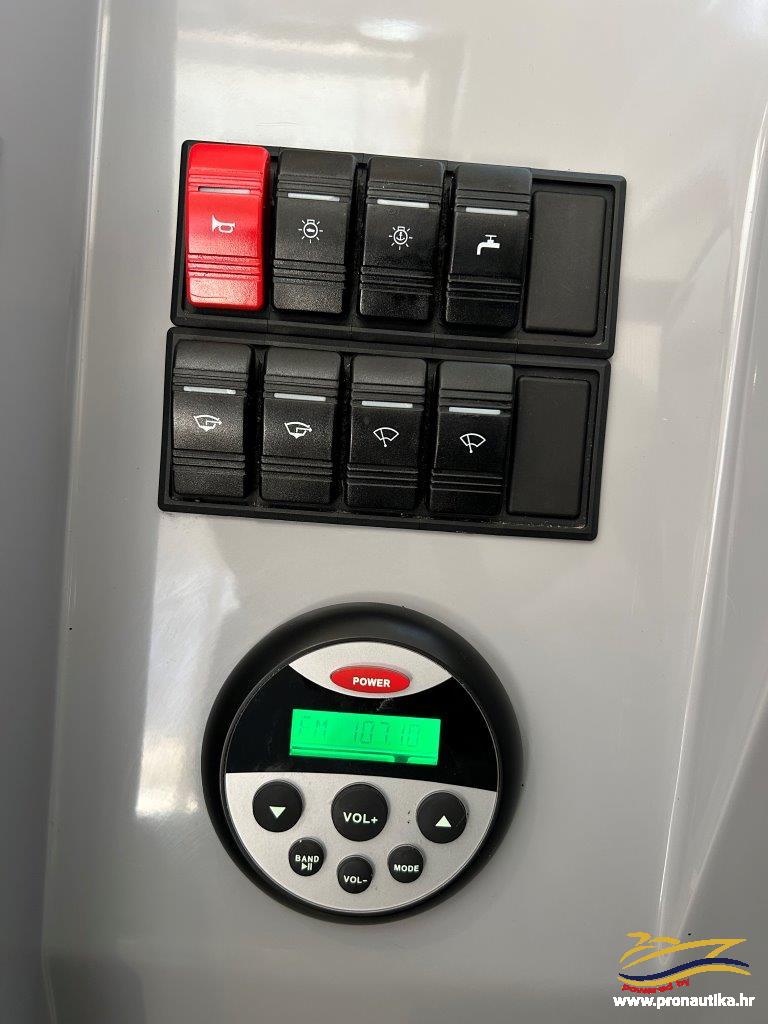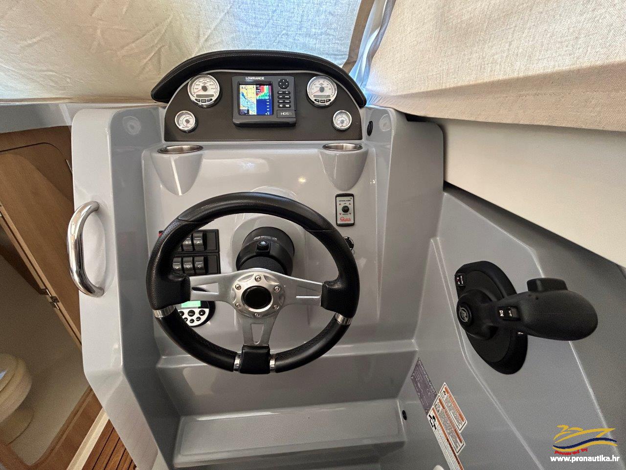Plovilo sa praktički novim motorom, remotoriziran 2020 g i korišten samo 85 sati, plovilo je od prvog vlasnika i korišten je samo sezonski za osobne potrebe u ljetnim mjesecima, registriran na Hrvatsku zastavu na fizičku osobu sa važećim tehničkim pregledom do 05/2030. Održavan po najvišim standardima. Opremljen sa svim dostupnim opcijama + extra paket opreme smart edition. Smart craft instrumenti, Lowrance GPS/Fishfinder, stereo sistem BT, Waeco 12 v hladnjak, električno sidreno vitlo, bočna klizna stakla, velik klizni otvor na krovu kormilarnice, unutrašnje zavjese 360, tuš u kokpitu, zatvorena wc prostorija sa morskim wc + fekalni tank sa macerator pumpom, pramčano sunčalište, kokpit salon sa stolom, bimini top sa svim tendama za zatvaranje kokpita, novi pramčani most, obalni priključak na 220 v sa punjačem baterija, dupli sistem baterija, trup u sivoj boji, hidrauličan sistem upravljanja, set za dupli ležaj u kabini i salonu. Izuzetno dobra prilika! Plovilo je upravo kompletno polirano, očišćeno, servisiran motor, novi antifouling i cinkovi, potpuno spreman za korištenje, prodaje se sa jamstvom od 12 mjeseci na motor. Isporuka na destinaciju kupca je moguća.