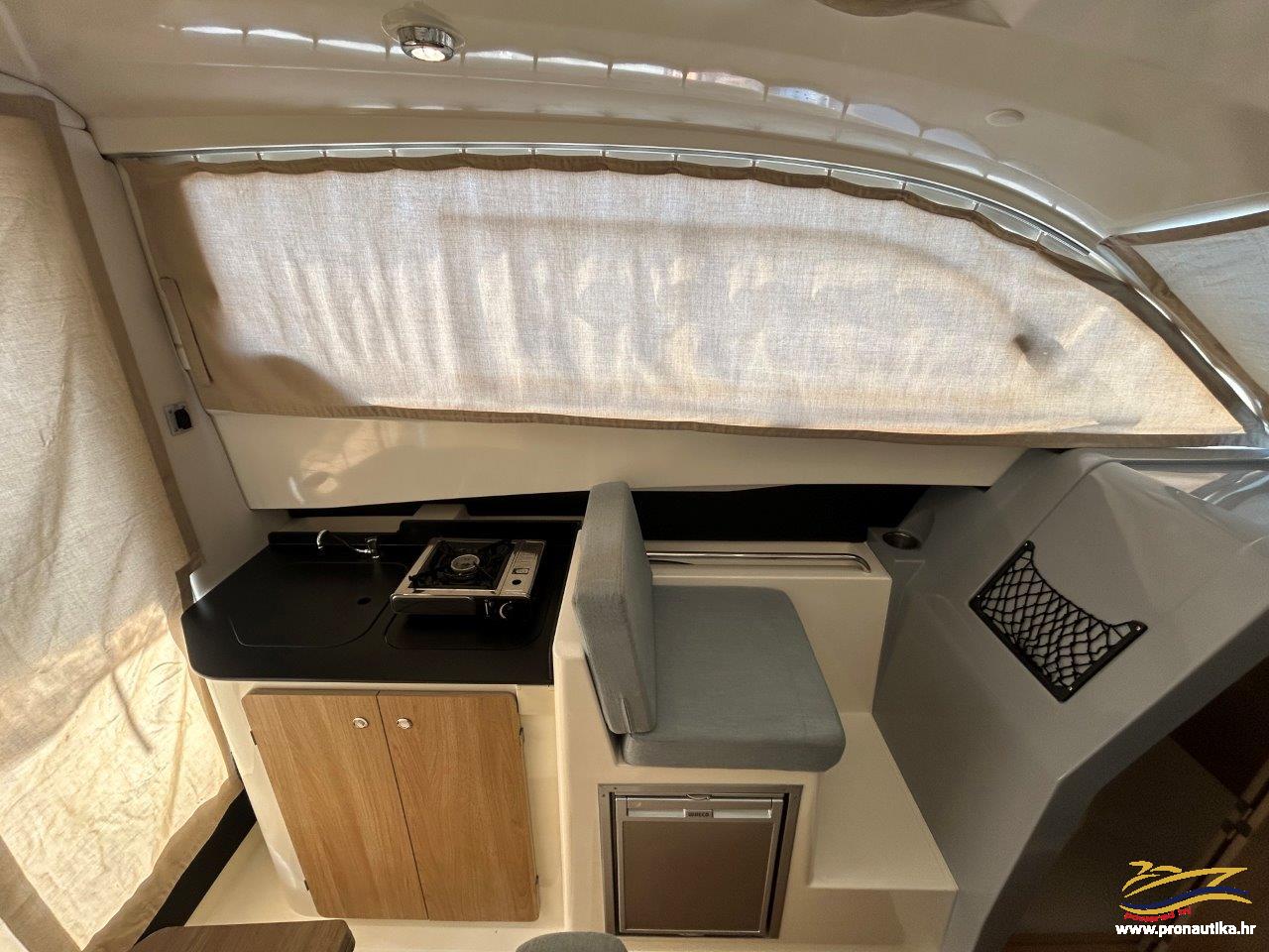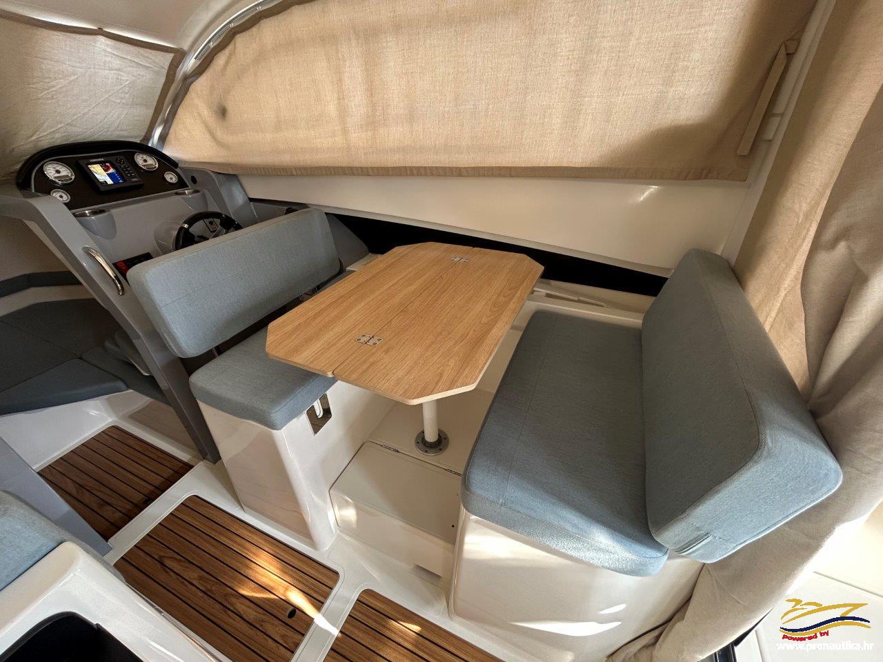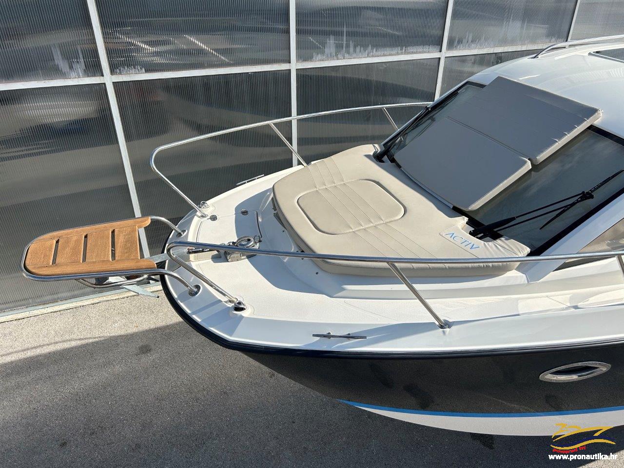 Plovilo sa praktički novim motorom, remotoriziran 2020 g i korišten samo 85 sati, plovilo je od prvog vlasnika i korišten je samo sezonski za osobne potrebe u ljetnim mjesecima, registriran na Hrvatsku zastavu na fizičku osobu sa važećim tehničkim pregledom do 05/2030. Održavan po najvišim standardima. Opremljen sa svim dostupnim opcijama + extra paket opreme smart edition. Smart craft instrumenti, Lowrance GPS/Fishfinder, stereo sistem BT, Waeco 12 v hladnjak, električno sidreno vitlo, bočna klizna stakla, velik klizni otvor na krovu kormilarnice, unutrašnje zavjese 360, tuš u kokpitu, zatvorena wc prostorija sa morskim wc + fekalni tank sa macerator pumpom, pramčano sunčalište, kokpit salon sa stolom, bimini top sa svim tendama za zatvaranje kokpita, novi pramčani most, obalni priključak na 220 v sa punjačem baterija, dupli sistem baterija, trup u sivoj boji, hidrauličan sistem upravljanja, set za dupli ležaj u kabini i salonu. Izuzetno dobra prilika! Plovilo je upravo kompletno polirano, očišćeno, servisiran motor, novi antifouling i cinkovi, potpuno spreman za korištenje, prodaje se sa jamstvom od 12 mjeseci na motor. Isporuka na destinaciju kupca je moguća.