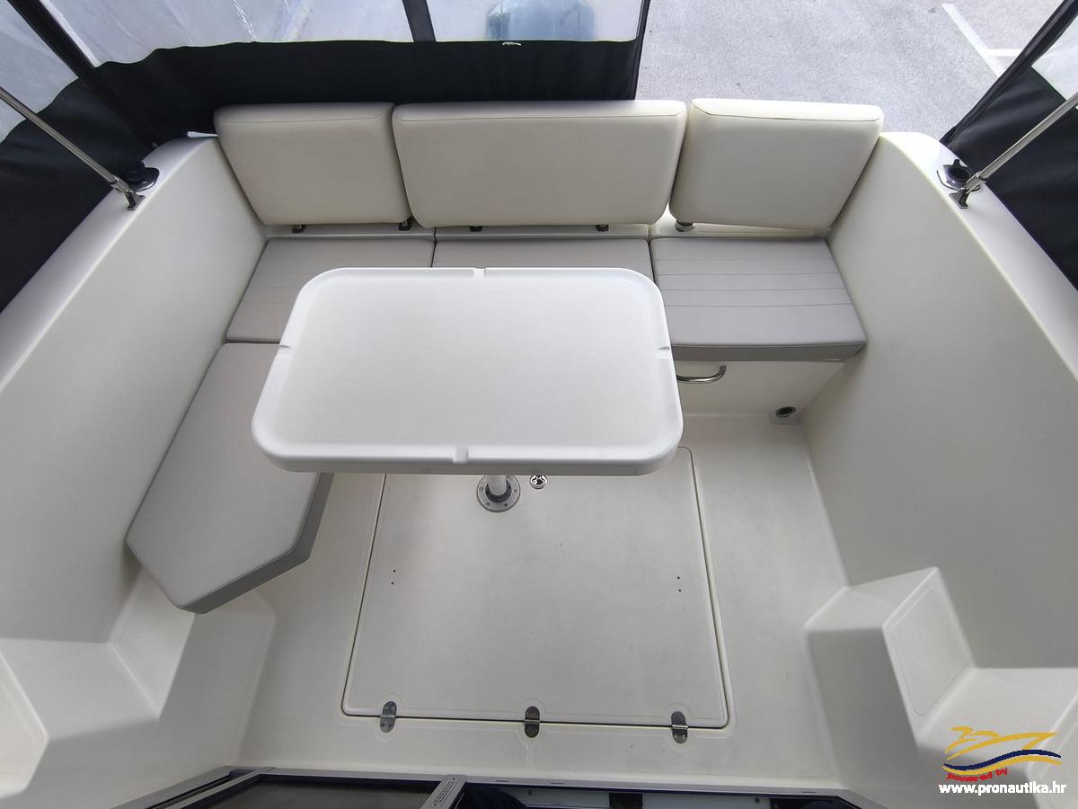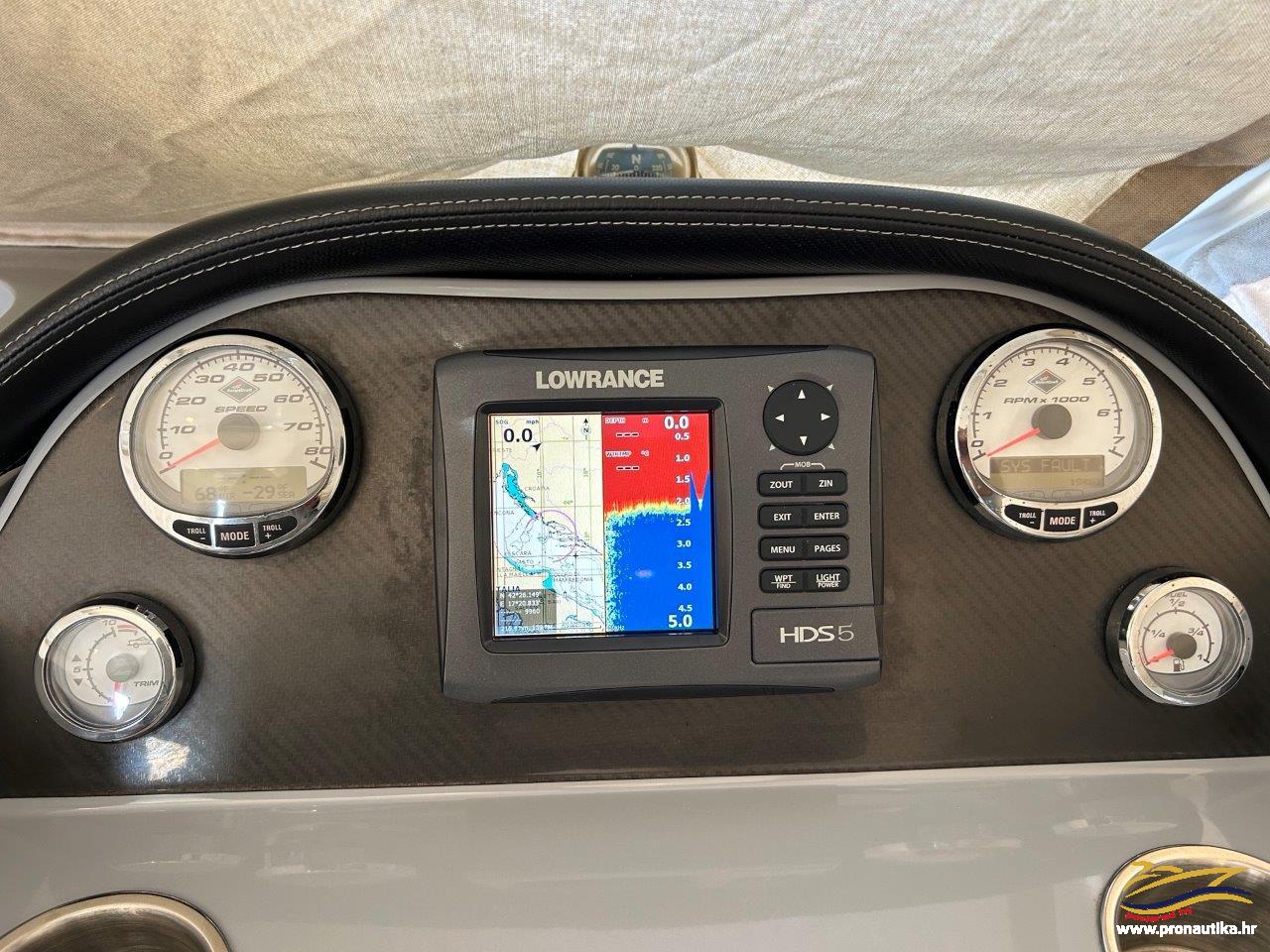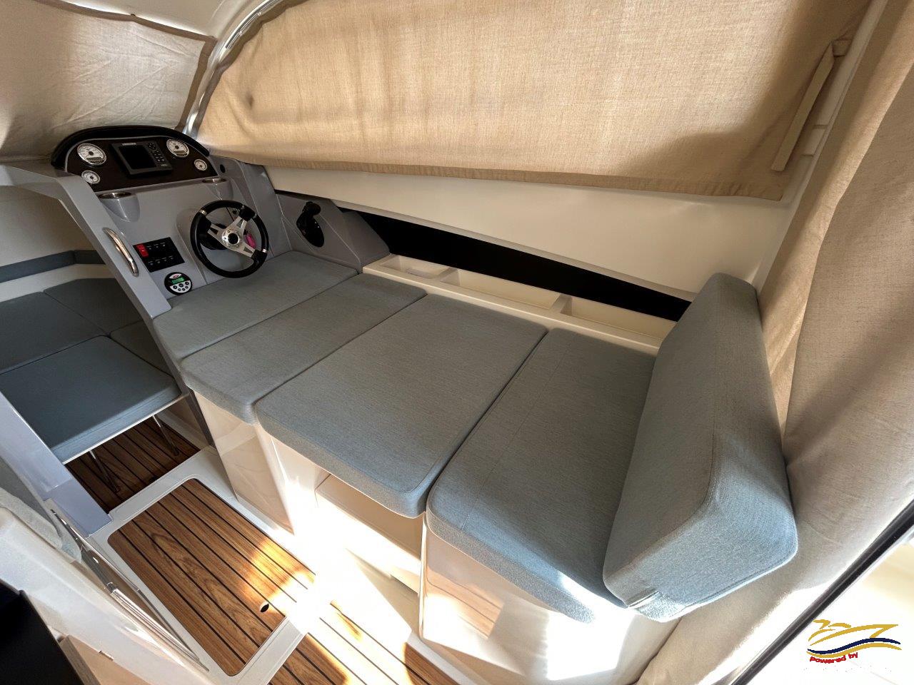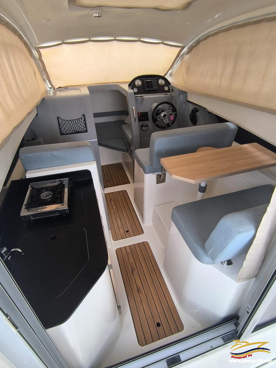 Plovilo sa praktički novim motorom, remotoriziran 2020 g i korišten samo 85 sati, plovilo je od prvog vlasnika i korišten je samo sezonski za osobne potrebe u ljetnim mjesecima, registriran na Hrvatsku zastavu na fizičku osobu sa važećim tehničkim pregledom do 05/2030. Održavan po najvišim standardima. Opremljen sa svim dostupnim opcijama + extra paket opreme smart edition. Smart craft instrumenti, Lowrance GPS/Fishfinder, stereo sistem BT, Waeco 12 v hladnjak, električno sidreno vitlo, bočna klizna stakla, velik klizni otvor na krovu kormilarnice, unutrašnje zavjese 360, tuš u kokpitu, zatvorena wc prostorija sa morskim wc + fekalni tank sa macerator pumpom, pramčano sunčalište, kokpit salon sa stolom, bimini top sa svim tendama za zatvaranje kokpita, novi pramčani most, obalni priključak na 220 v sa punjačem baterija, dupli sistem baterija, trup u sivoj boji, hidrauličan sistem upravljanja, set za dupli ležaj u kabini i salonu. Izuzetno dobra prilika! Plovilo je upravo kompletno polirano, očišćeno, servisiran motor, novi antifouling i cinkovi, potpuno spreman za korištenje, prodaje se sa jamstvom od 12 mjeseci na motor. Isporuka na destinaciju kupca je moguća.