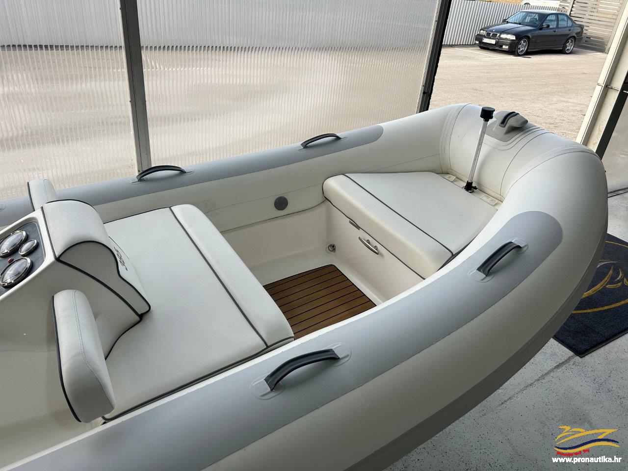Privatno korišten kao tender, nakon svake vožnje vađen i ispiran, upravo obavljen servis i ugrađena nova ispušna grana sa turbinom u vrijednosti 2900 € . Nema nikavih oštečenja niti nedostataka, tubusi u stanju novoga, sva sjedišta originalna i doslovno kao nova. Dolazi sa originalnom ceradom koja ga pokriva kompletnog. Opremljen sa GPS brzinomjerom, tikovina, kaljužna pumpa, blower, navigacijska svijetla, nosač za sidro, bitve za privez, sklopiva vesla i sva ostala standardna oprema .